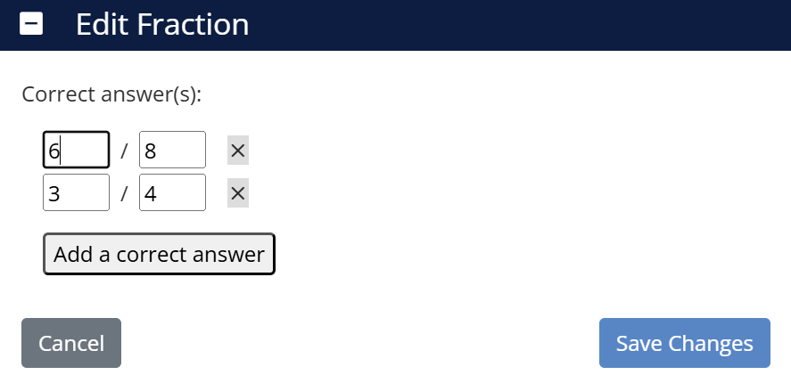If you want to accept equivalent fractions, be sure to include all possible correct versions.