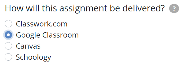 Select to deliver the assignment via Google Classroom, and you will move to Step 3 of creating the assignment. Selecting “Saved as Draft” will allow you to finish setting up the assignment later.