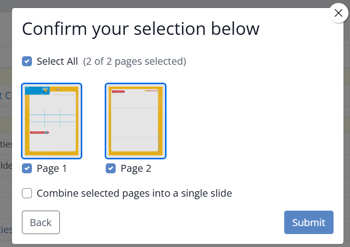 - Combine selected pages into a single slide: Selected pages are joined into one scrollable slide.