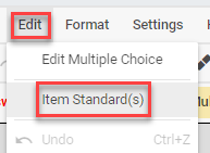 - Click Standard(s) from the top tool bar or from the Edit menu, select Item Standard(s).