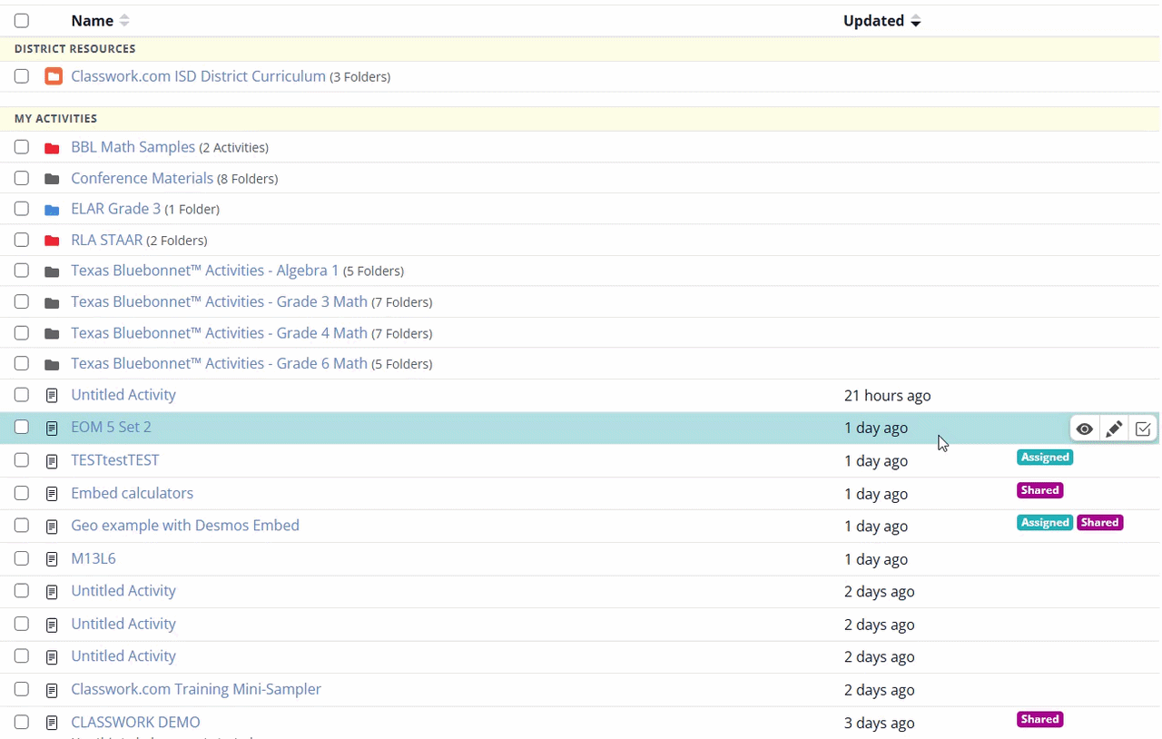 You can sort items on the Activities page alphabetically or by the last time an activity was updated. Folders and activities behave differently depending on which sorting option you choose.