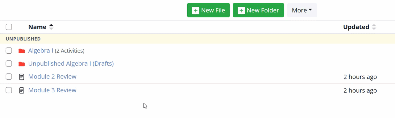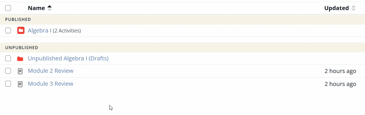 Inside a root folder, place all activities, assessments, and supporting resources that belong together.